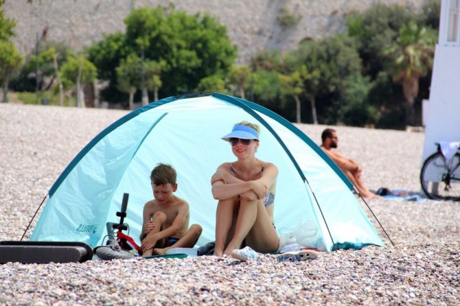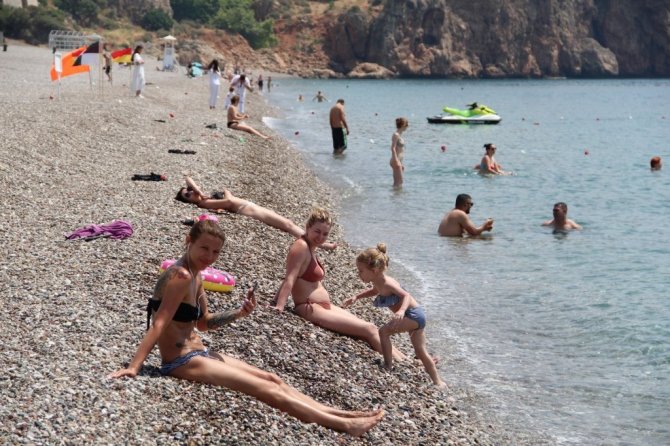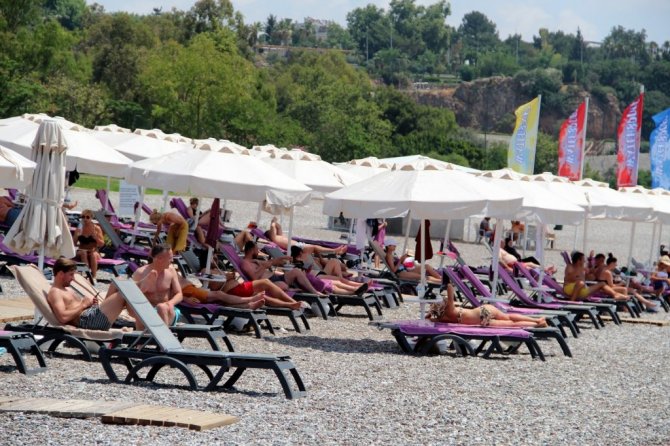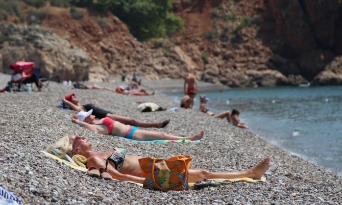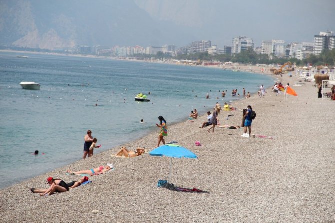Korona virüs tedbirleri kapsamında uygulanan sokağa çıkma kısıtlamasının ikinci gününde, Antalya'nın sahilleri kısıtlamadan muaf yerleşik olmayan turistlere kaldı. Yüzde 73'lük nemle birlikte 30 dereceyi bulan sıcak havada turistlerin adresi dünyaca ünlü Konyaaltı Sahili oldu. 5 yıldızlı otellerde konaklayan turistler sabahın erken saatlerinde plaja geldi. Bazı turistler Akdeniz'in mavi sularında kulaç atarken, bazıları ise bronzlaşmayı tercih etti. Adrenalin seven turistler ise su sporlarında ringo yaptı. Otellerin plajlarındaki şezlonglarda da çok sayıda turistin güneşlendiği görüldü. Bir önceki haftalara göre sahildeki turist yoğunluğunun fazla olduğu gözlemlendi.