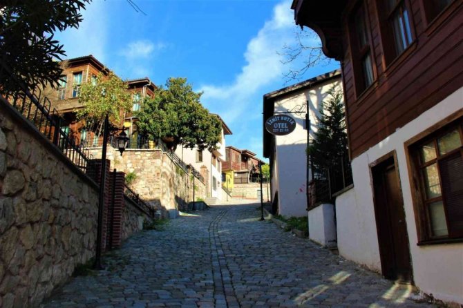 19. yüzyıl Osmanlı mimarisinin özelliklerini bünyesinde barındıran Kapanca Sokak görenleri mest ediyor.