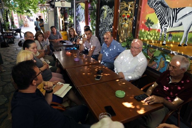 Arasta çarşısındaki sorunların masaya yatırıldığı toplantıda, Arasta esnafını tek tek dinleyen Başkan Gümüş, “Arasta geleneksel, kültürel ve sanatsal değeri olan, unutulmaya yüz tutmuş mesleklerin yaşatıldığı tarihi bir çarşımız. Zaman içerisinde ticaretin kentin aşağısına doğru kayması ile Arasta’mız eski günlerinde ki gibi olmasa da halen kentimize ziyarete gelen yerli ve yabancı turistlerin ilk uğradıkları tarihi bir çarşı. Adeta bir kent belgeliği niteliğinde olan bu bölgemiz, bizim için çok önemli ve değerli. Esnafımız burada zor şartlar altında tarihimizi yaşatmaya çalışıyorlar. Bu nedenle burayı yeniden canlandırmamız gerekiyor. Bunu da Arasta’mızı en iyi bilen, 40 yılı aşkındır Arasta’da esnaflık yapan büyüklerimizle yapmak istedik. Esnafımızı dinleyip, sorunları masaya yatırıp, birlikte çözüm üreteceğiz. Bu bölge aynı zamanda Kentsel Sit Alanı içerisinde bulunuyor. Yani burada bir şey yapacağımız zaman Anıtlar Kurulundan, Tabiat Varlıklarını Korumu Kurulundan, Büyükşehrimizden izin almamız gerekiyor. Tespitini yapacağımız sorunlar ve alacağımız izinlerle Arasta’mızı yeniden canlandıracağız. Kent kültürümüzün bir parçası olan Arasta’mızı gelecek kuşaklara, koruyarak aktarmayı hedefliyoruz” dedi.