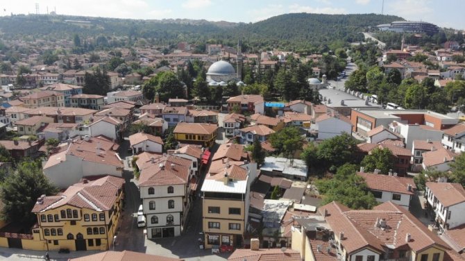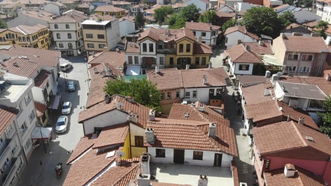 Eskişehir'de Kurban Bayramı'nın ikinci gününde boş kalan tarihi evleriyle meşhur Odunpazarı, drone ile havadan görüntülendi.
