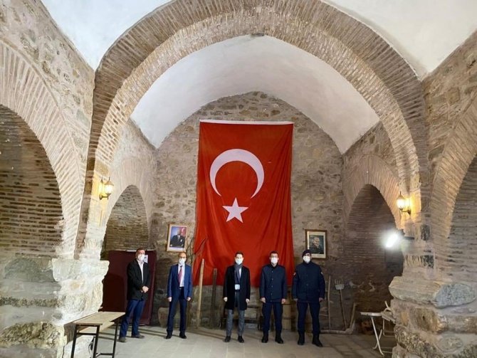 Kütahya'nın Altıntaş ilçesinde bulunan tarihi Çakırsaz Hanı'nda Altıntaş Kaymakamı Mehmet Can İrdelp incelemelerde bulundu.