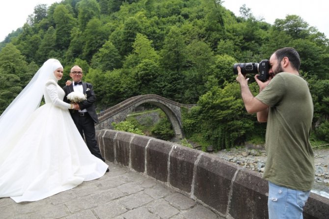 Düğün öncesi fotoğraf çekimlerin için çifte kemer köprüleri tercih eden damat Ali Hancı, "Arhavi Karadeniz'in incisidir. Buranın coğrafyası çok güzel. Çifte köprüler geleneksel bir yer. Her çift mutlaka buraya gelir. Bizde burayı tercih ettik hoşumuza gidiyor. Doğayla ve kültürle iç içeyiz. Samsunluyum ama burada Artvinli oldum. Buranın insanları hoş, ne mutlu burada olduğuma" dedi.