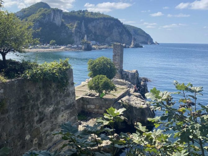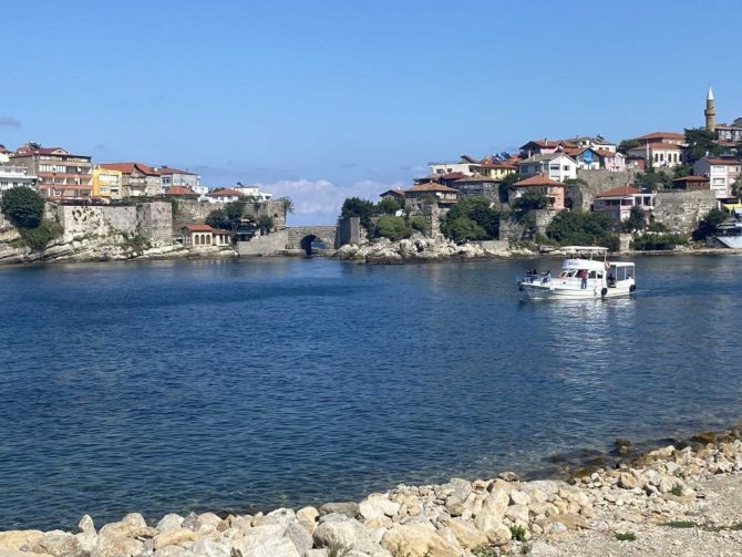 7 metre uzunluğundaki tarihi Direkli Kaya'nın denizi aydınlatmak ve gözetlemek için Cenevizliler tarafından inşa edildiği, Bizans döneminde de Liman olarak kullanıldığı tahmin edilirken bölgede Kraliçe Amastris'in havuzunun olduğuna inanılmakta. Çevresinde kayaya oyulmuş basamaklar ve mermerden bir iskele bulunan Direkli Kaya'nın üzeri ve çevresine sprey boyalarla yazılan yazılar tepkilere neden oldu.