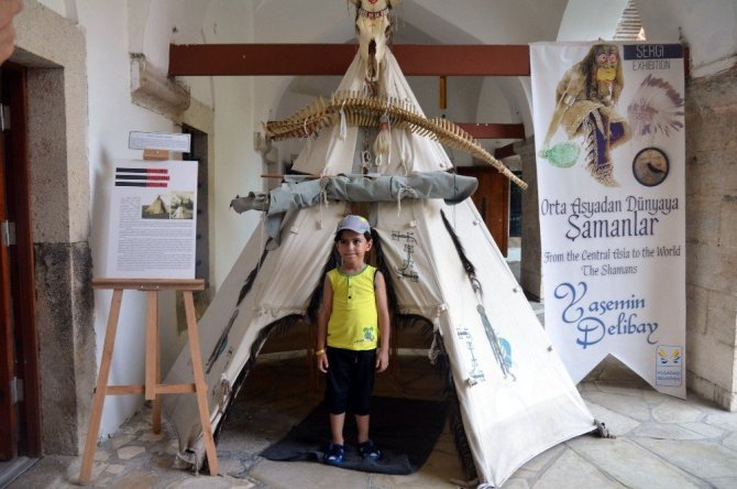 Sergilenen tüm materyallerin Yasemin Delibay tarafından el işçiliği ile üretildiği “Orta Asya’dan Dünyaya Şamanlar” sergisi bir ay süreyle Kervansaray’da görülebecek.