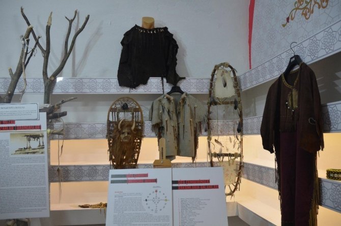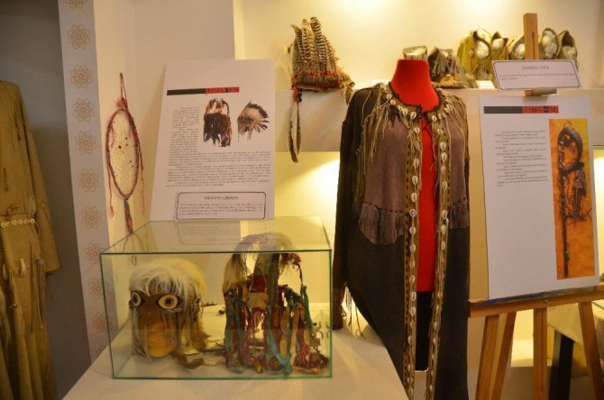 Kuşadası Belediyesinin katkılarıyla açılan sergide başta Orta Asya olmak üzere dünyanın farklı yerlerinde görülen Şaman ritüellerine ve gündelik yaşamlarına dair nesneler yer alıyor.