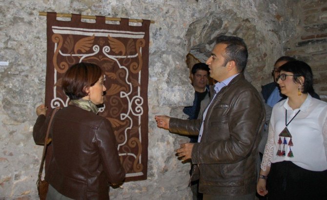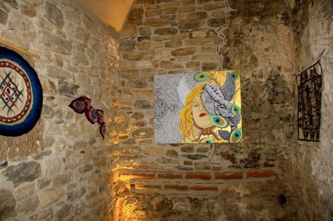 3 bin yıllık antik kentin girişinde bulunan ve restorasyonu tamamlanan 700 yıllık Selçuk Hamamında açılan geleneksel Türk tekstil sanatları sergisinde 21 kadın sanatçının 33 eseri sergilendi. Restorasyon sonrası loş ışıklandırma yapılan tarihi hamamın içinde yer alan serginin açılışını Yatağan Kaymakamı Hayrettin Çiçek, kazı başkanı Prof. Dr. Bilal Söğüt, Elibelinde Grubu kurucusu Doç. Dr. Ayşegül Koyuncu Okca yaptı.