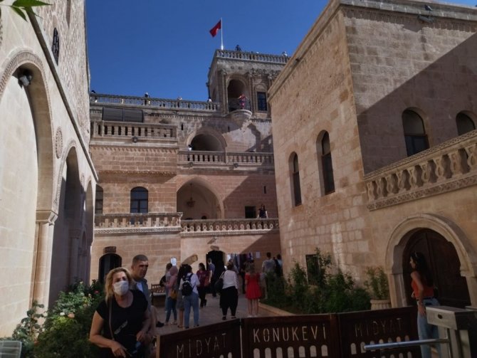 Mardin'in Midyat ilçesinde bulunan, tarihi Midyat Konuk Evine hafta sonu turist akını yaşanıyor.