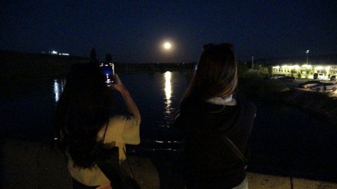 Ay'ın Dünya'ya en yakın konumda olduğu, normalden daha parlak ve büyük göründüğü "Süper Ay", gökyüzündeki görsel şöleniyle görenleri kendine hayran bıraktı. Muş'ta bu anı fotoğraflamak ve kayda almak isteyen çok sayıda kişi, tarihi Murat Köprüsü'ne gelerek anın tadını yaşadı. Nehre yansıyan eşsiz "Süper Ay" manzarasını fotoğraflayan vatandaşlar, doyumsuz manzarayı izledi.