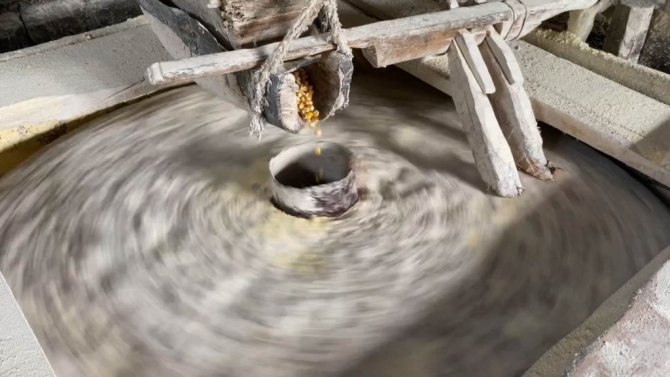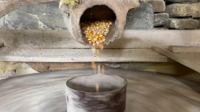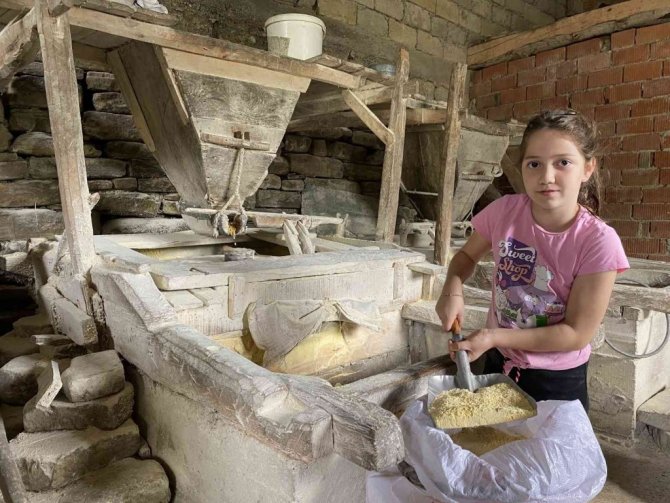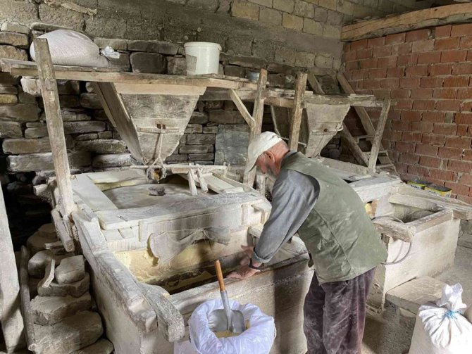 Tarihi su değirmeninin taşları nöbetleşe döndürülüyor