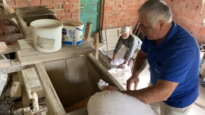 Değirmende bir ay kendisinin nöbet tutacağını söyleyen Hüseyin Korkut, "Benim yaşıma göre ben 70 yıldır biliyorum yani buranın yapılmasını. Daha evveliyatı da daha eski yani. Dedelerimizden doğru geliyor. Mısır, buğday, yulaf, arpa artık ne gelirse ne öğütülüyorsa. Getiren olursa pirinç unu bile çıkartıyoruz yani. Ben mesela bir ay bekleyeceğim şimdi. Amcadan ben aldım sonra öbür amca gelecek. Nöbetleşe bekliyoruz. Senede bir sefer veya iki sefer gelir üç sefer gelir. Hak almıyoruz eskiden dedelerden gelen bir mucur var. Bir ölçeğimiz var bizim küçük iki teneke de bir veya bir tenekede bir ölçek ile alıyoruz yani" şeklinde konuştu.