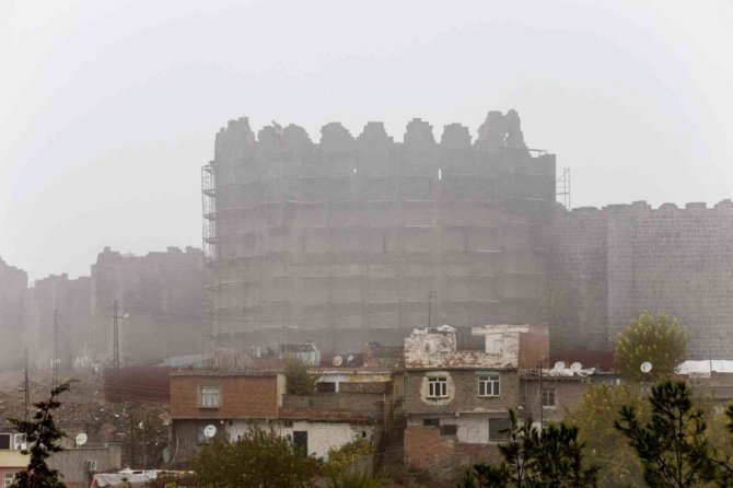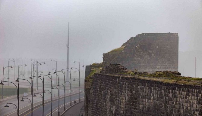 Diyarbakır'da sabah saatlerinde başlayan sis saat 11.00 gibi şehir merkezinin bir kısmını da etkisi altına aldı. Birkaç gündür devam edem sis görüş mesafesini yer yer 10 metreye kadar düşürürken, kentte etkili olan sisle birlikte tarihi surlar da sis içinde kayboldu.