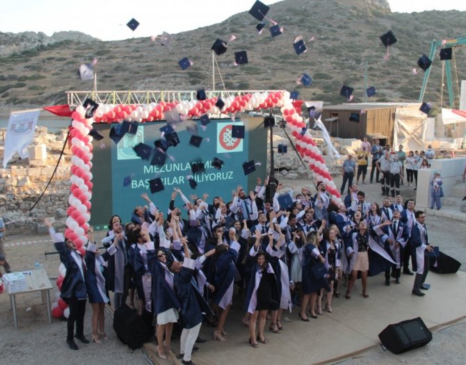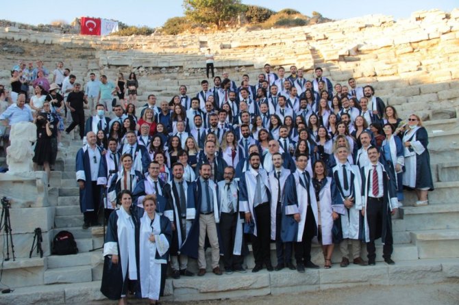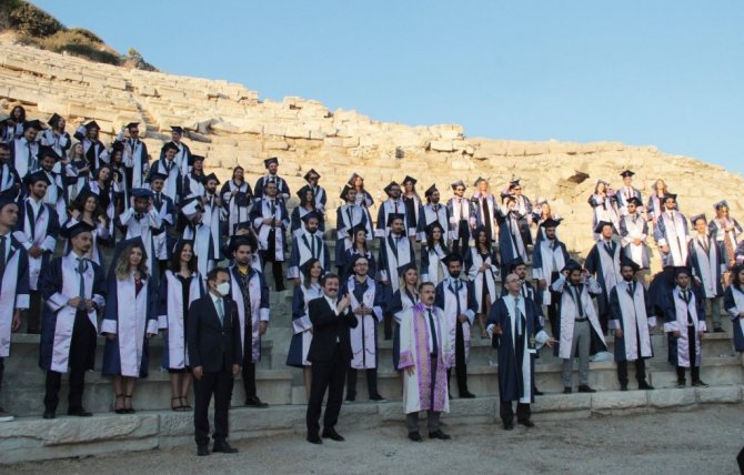 Pandemi döneminde yüz yüze eğitim veren Muğla Sıtkı Koçman Üniversitesi Tıp Fakültesi'nden mezun olan 85 doktor diplomalarını tarihin ilk tıp okulunun kurulduğu Muğla'nın Datça ilçesindeki antik Knidos kentinde aldı.