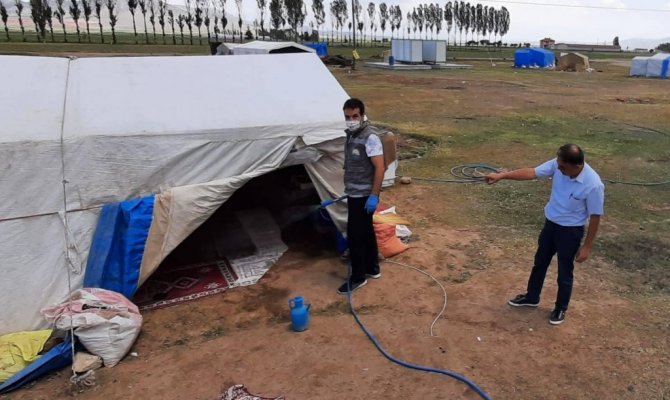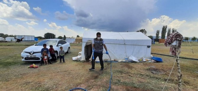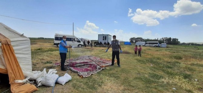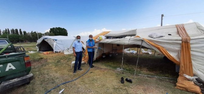 Tarım işçilerinin barınakları dezenfekte edildi