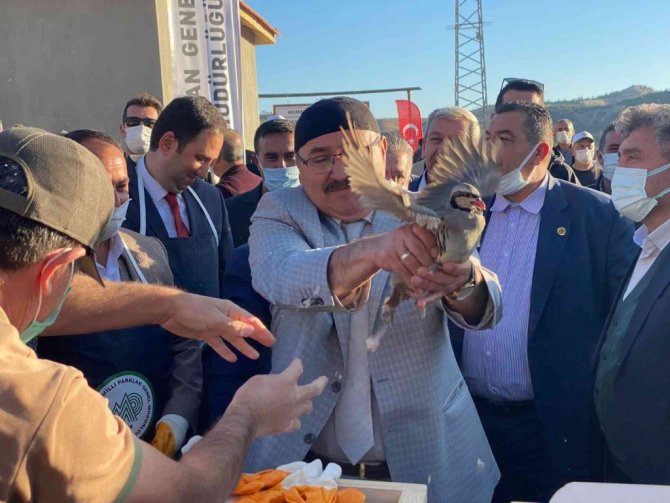 Ziyaretin ardından ilçeye bağlı Kemerkaya köyüne geçen Özkaldı, Afyonkarahisar Doğa Koruma ve Milli Parklar Bölge Müdürlüğü tarafından tedavisi tamamlanan şahin ile Şuhut Keklik Üretim Merkezi'nde üretimi yapılan kekliklerin doğaya salınma törenine katıldı.