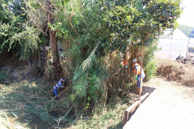 Büyükşehir Belediyesi Tarımsal Hizmetler Dairesi Başkanlığı, yaz aylarında su kayıplarını en aza indirmek, kış aylarında da su taşkınlarını ve sel baskınlarını önlemek için Kumluca'da tarımsal sulama kanallarını ıslah ediyor. Çalışma kapsamında kanallarda su akışına engel olan otlar ve ağaç dalları temizleniyor. Tarımsal Hizmetler Dairesi Başkanlığı ekipleri çalışmalara Kumluca'nın 5 mahallesini kapsayan en büyük kanal olan Kocakesik'ten başladı. Beykonak Mahallesi'nde çalışmalara devam eden ekipler, 25 kilometrelik kanal boyunca iş makinaları ve makinaların giremediği yerlerde insan gücüyle temizleme çalışması yapacak. Büyükşehir Belediyesi, yaz boyunca ilçenin farklı noktalarındaki kanalların temizlenmesine devam edecek.