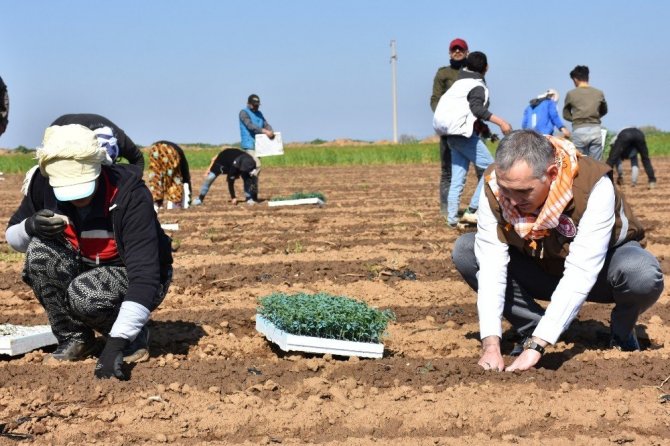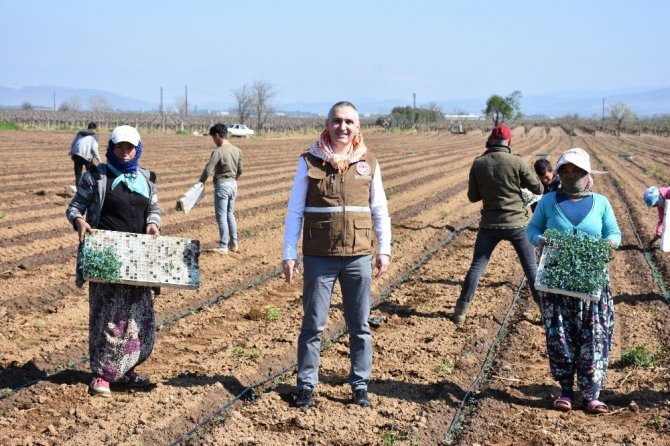 Gölmarmara ilçesine giden Manisa İl Tarım ve Orman Müdürü Metin Öztürk burada domates fidesi diken üreticilerle bir araya geldi. Üreticilerle birlikte fide dikimi gerçekleştiren Öztürk, çiftçilerin sorularını da yanıtladı.
