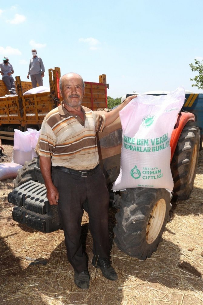 Antalya Orman Çiftliği'nden hasat edilen buğdaylar gelecek sezon ekilmesi için tarlası yanan çiftçilere tohumluk olarak dağıtıldı. Kepez Belediyesi'nin tarımda farkındalık oluşturmak için 540 dönümlük araziye ektiği ekmeklik buğdaylar, emekleri kül olan 75 çiftçinin yüzünü güldürdü. Kepez Belediyesi, tarımda farkındalık oluşturmak için 540 dönüm araziye 11 ton ekmeklik buğday ekmişti. Bereketli bir hasat gerçekleştiren Kepez Belediyesi, elde edilen buğday ile ihtiyaç sahiplerinin 1 yıllık ekmek ihtiyacını da karşılayacak.
