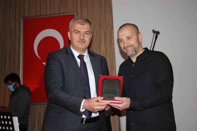 Konuşmasının sonunda günün anısına Ramazan Konserine sponsor olan ve aynı zamanda koronun kanun sanatçısı olan Mehmet Ali Er'e plaket ve Koro Şefi Muammer Eliyatkın'a çiçek takdim eden Okumuş, katılan davetlilere de teşekkür etti.