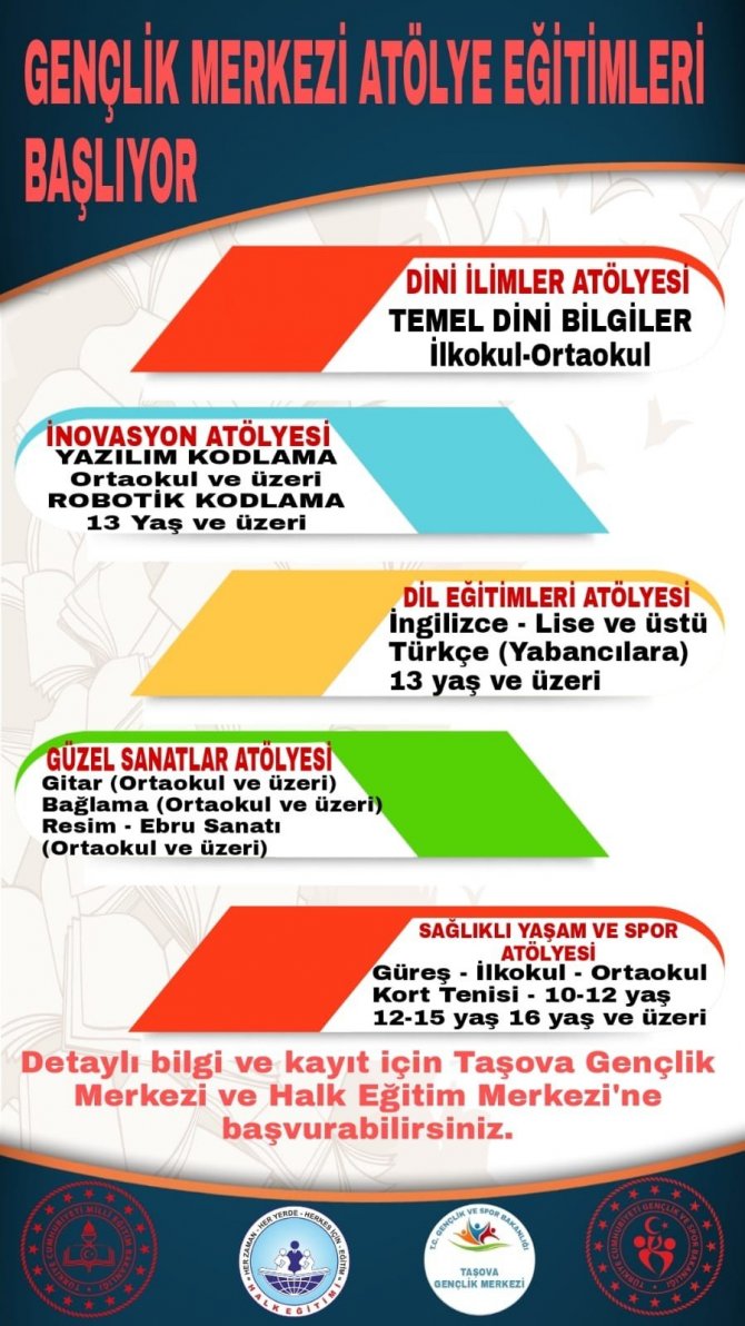 Amasya'nın Taşova ilçesinde çocuklara ve gençlere yönelik faaliyet gösteren Taşova Gençlik Merkezi'nden yapılacak yeni dönem faaliyetler için çağrıda...