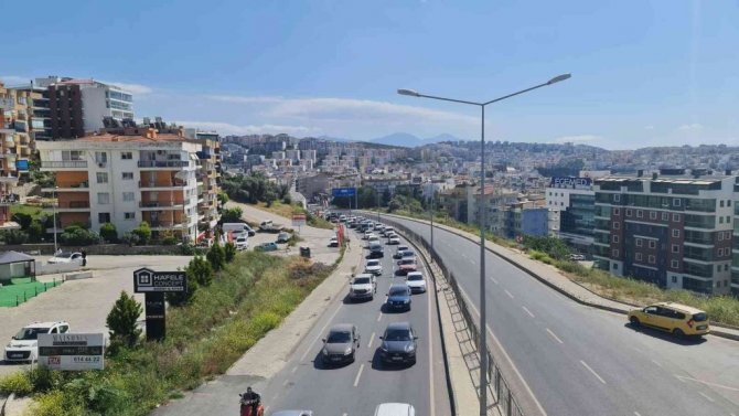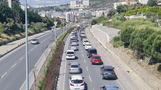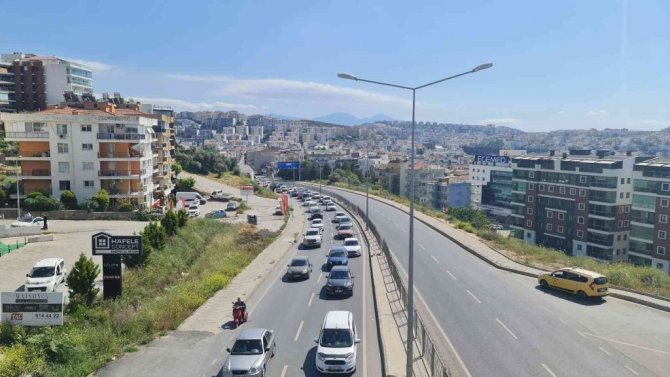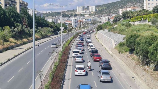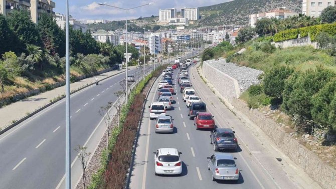 Ramazan Bayramın son gün tatili için geldikleri Kuşadası'ndan ayrılan tatilcilerin geri dönüş yolculuğunda Kuşadası İzmir karayolunda trafik yoğunluğu oluştu.