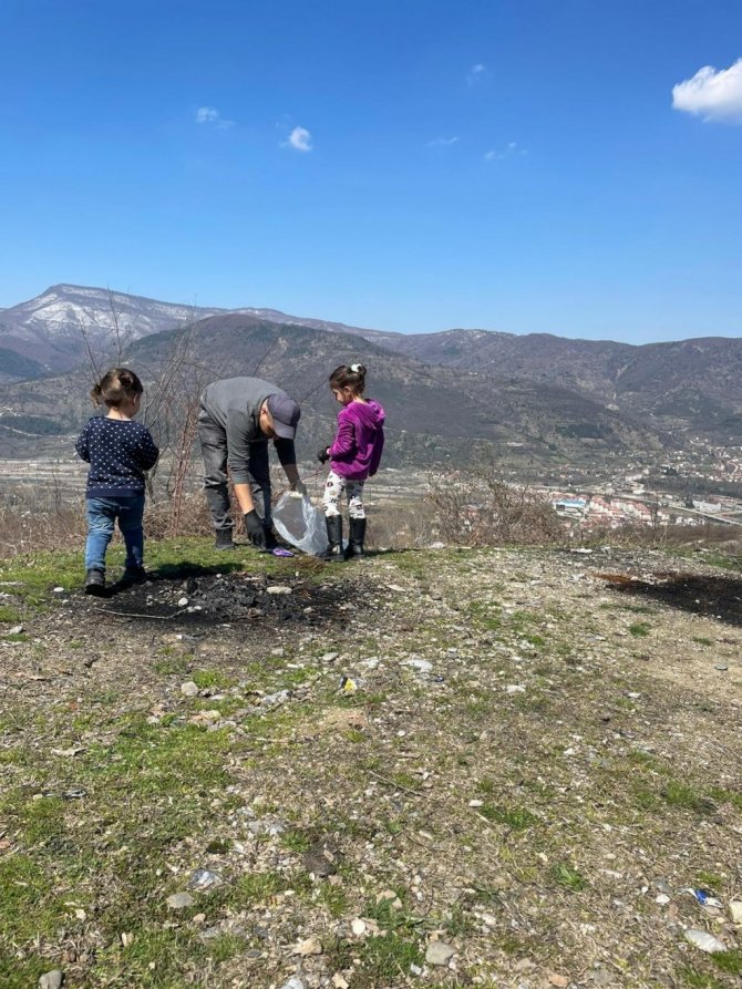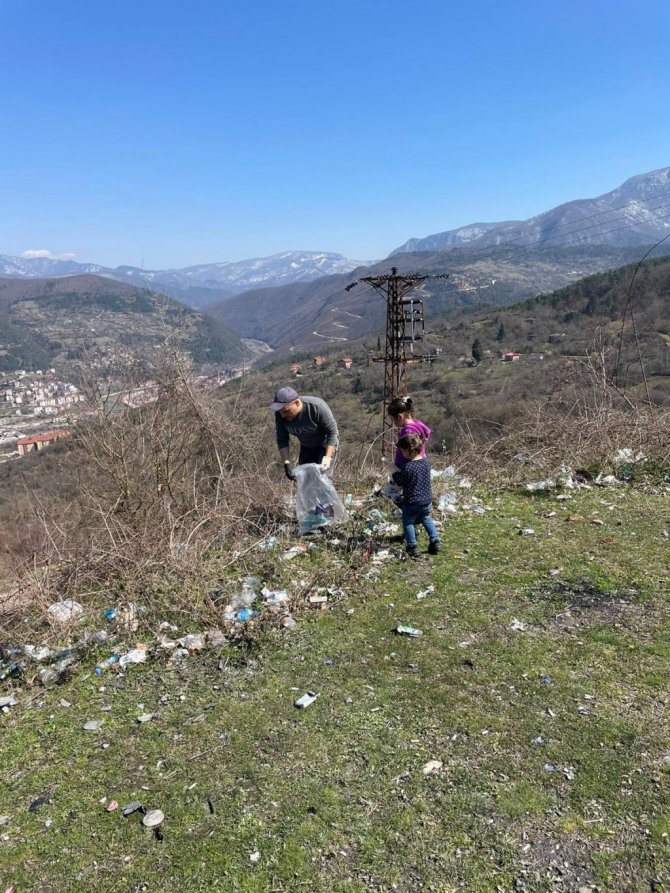 Yaz tatili için Almanya'dan memleketi Karabük'e geldikten sonra çevredeki çöplerden rahatsız olan gurbetçi çocuklarıyla birlikte temizlik yaptı.