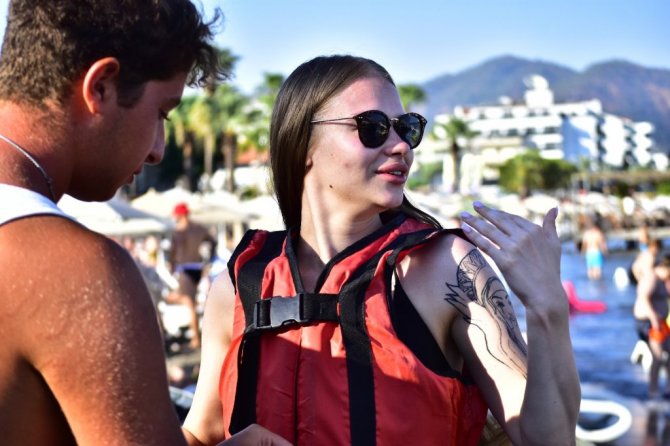 Marmaris'i çok beğendiğini söyleyen Rusya'dan tatil için gelen 23 yaşındaki Katya Lohmatikova ise, "Marmaris çok güzel, deniz, dağlar harika. Her tatile çıktığımda su sporları mutlaka yaparım çok eğlenceli" diye konuştu. Lübnan'dan tatile gelen bir aile de, "Jet-skiye bineceğiz çok eğleneceğiz" ifadelerini kullandı.