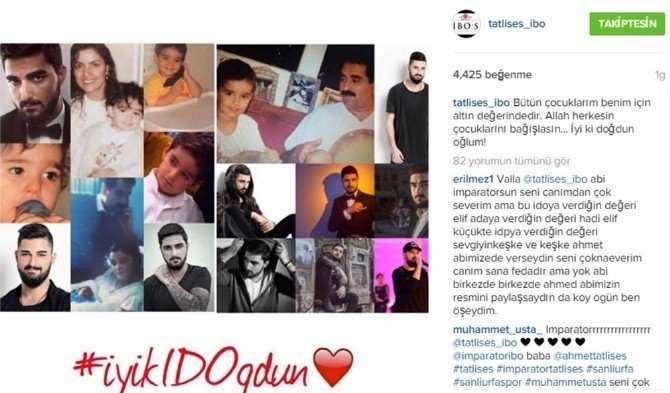 Geçtiğimiz günlerde 24 yaşına giren şarkıcı İdo Tatlıses’in doğum gününü babası İbrahim Tatlıses, İdo’nun eski ve yeni fotoğraflarından hazırladığı kolaj ile kutladı. İmparator, Instagram paylaşımında, "Bütün çocuklarım benim için altın değerindedir. Allah herkesin çocuklarını bağışlasın... İyi ki doğdun oğlum!" ifadelerini kullanırken, anne Derya Tuna ise İdo’nun çocukluk yıllarındaki doğum gününde birlikte pasta keserken çekilen fotoğrafını paylaşarak, "Benim sevgilim aşkım hayatım ömrüm nefesim seni seviyorum" dedi.