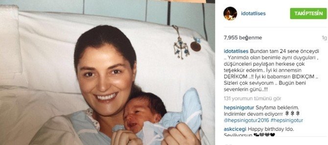 Anne ve babasının doğum günü mesajlarının ardından doğduğu zamana ait annesi ile çekilmiş bir fotoğrafını, "Bundan tam 24 sene önceydi. Yanımda olan benimle aynı duyguları, düşünceleri paylaşan herkese çok teşekkür ederim. İyi ki annemsin Derikom. İyi ki babamsın Bıdıkçım. Sizleri çok seviyorum. Bugün beni sevenlerin günü" notunu düşerek paylaşan İdo anne ve babasına teşekkür etti.