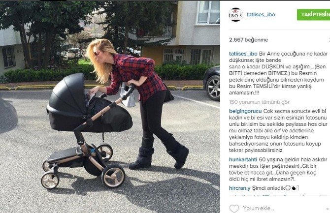 İbrahim Tatlıses, Instagram hesabından Petek Dinçöz’ün oğluyla çektirdiği fotoğrafı paylaşarak altına, "Bir anne çocuğuna ne kadar düşkünse; işte ben de sana o kadar DÜŞKÜN ve aşığım... (Ben BİTTİ demeden BİTMEZ.)" yazdı.