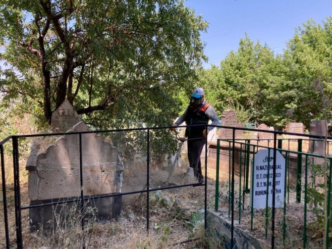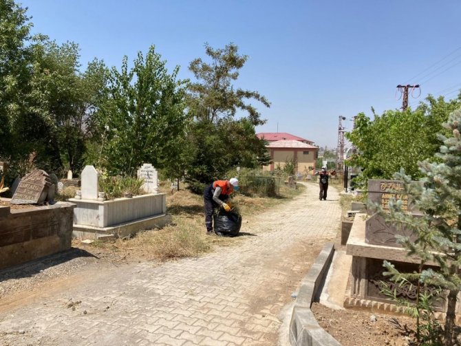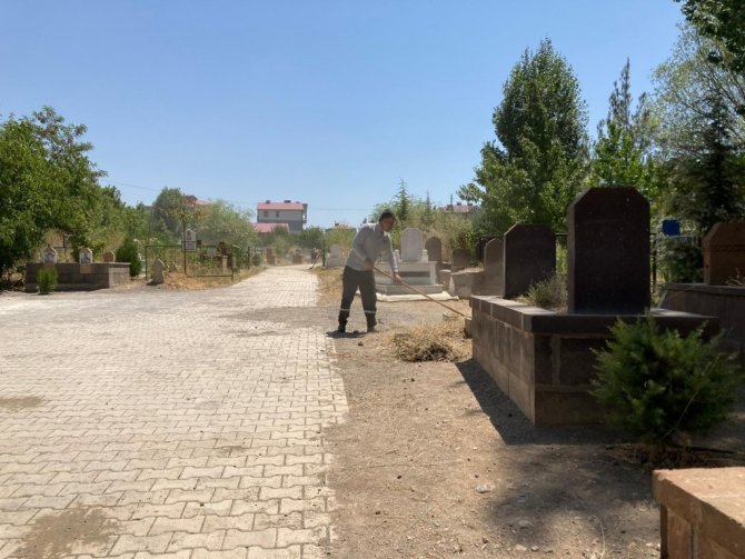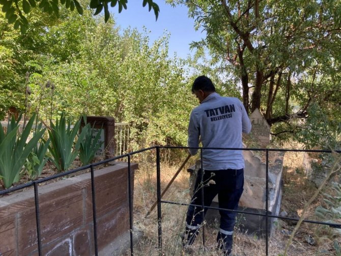 Bitlis'in Tatvan Belediyesi tarafından Kurban Bayramı öncesinde mezarlıklarda temizlik çalışması başlatıldı.
