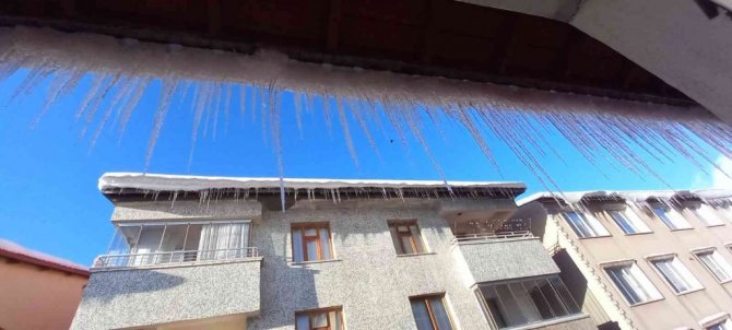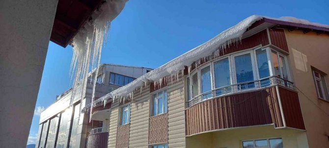Tatvan’da çatılarda 1 metrelik buz sarkıtları oluştu