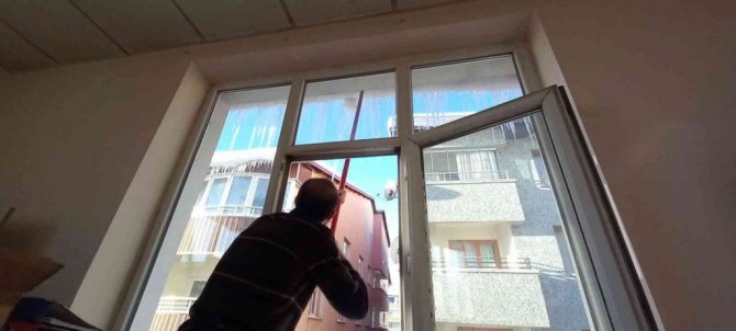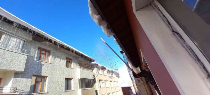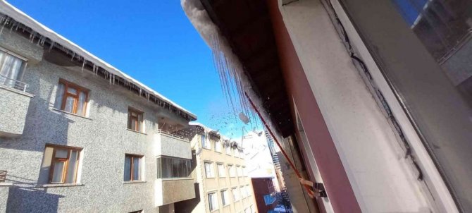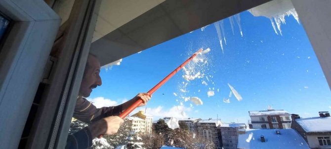Öte yandan, sabahın erken saatlerinde işe koyulan vatandaşlar tehlike oluşturmaması için buz sarkıtlarını kırmaya çalıştı.
