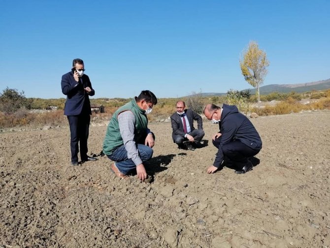 Kütahya İl Tarım ve Orman Müdürü Orhan Özçalık, Tavşanlı ilçesinde “Birlikte Üretimin Geliştirilmesi” Projesi kapsamında dağıtılan yem bezelyelerinin ekim alanlarında incelemelerde bulundu.