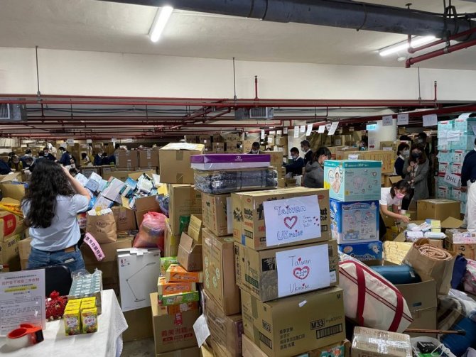 Tayvan Dışişleri Bakanlığının başlattığı Ukrayna'ya destek kampanyasında binlerce yardım kolisi hazırlandı.
