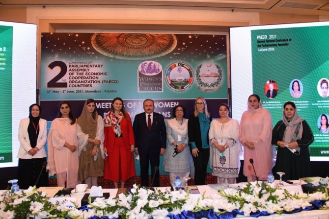 TBMM Başkanı Mustafa Şentop, Pakistan'da temaslarını sürdürüyor. Şentop, başkent İslamabad'da Ekonomik İşbirliği Teşkilatı Parlamenter Asamblesi (EITPA) 2'nci Genel Konferansı'nın "İklim Değişikliğinin Kadınlar Üzerindeki Etkisi: Bölgesel Parlamentolardaki Olumlu Eylemler" temalı oturumuna moderatörlük yaptı.