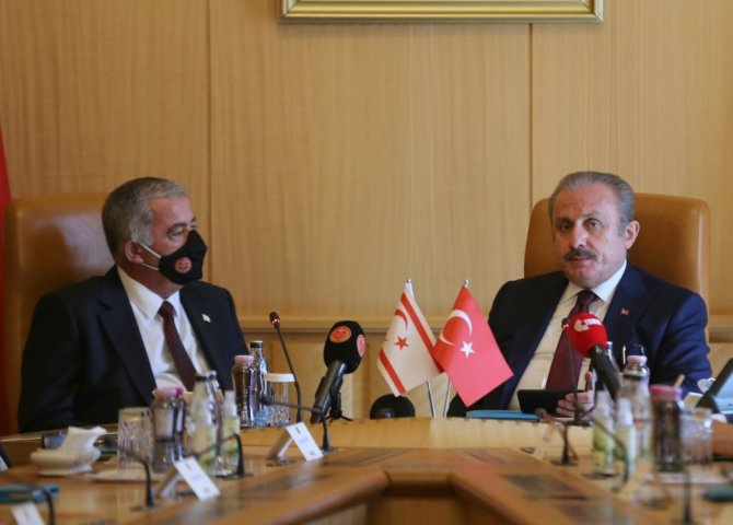TBMM Başkanı Mustafa Şentop, KKTC Meclis Başkanı Önder Sennaroğlu ve beraberindeki heyetle görüştü.
