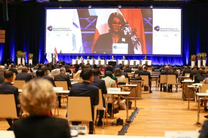 TBMM Başkanı Mustafa Şentop, Avusturya'nın başkenti Viyana'da Parlamentolar Arası Birlik (PAB) tarafından düzenlenen 5. Dünya Parlamento Başkanları Konferansı'nda,...