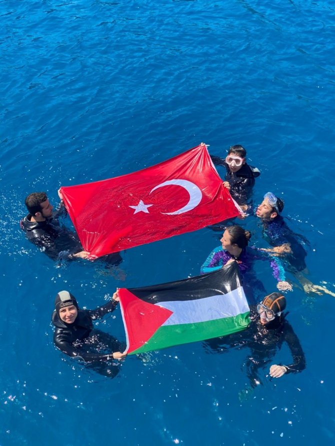 TDV gönüllüleri dalış yaparak Filistin bayrağı açtı