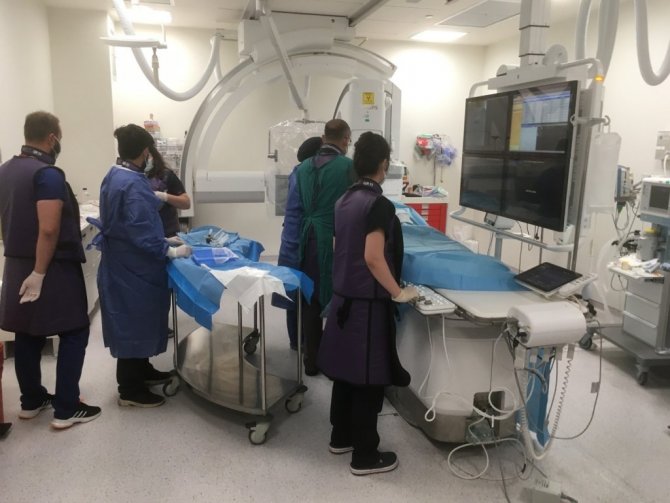 Öte yandan girişimsel radyolojide adeta iğne deliğinden vücuda giren ekipler, yüksek radyasyondan korunmak için ortalama 10 kilogramlık kurşun yeleklerle operasyonları gerçekleştiriyor.