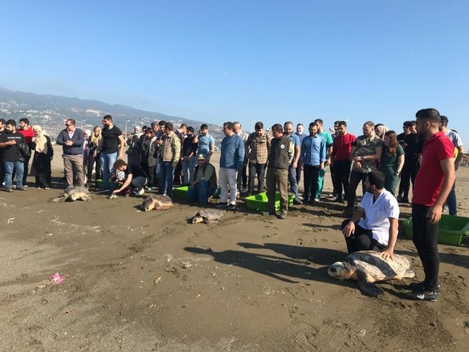 Kaplumbağalarda, boyun eğriliği, misina dolanması sonrası zarar görme ve kafa travmaları gibi rahatsızlar bulunduğunu anlatan Altuğ, "Onları iyileştirdik ve bugün sahilde bıraktık. Tedavileri üniversitemizde, Deniz Kaplumbağaları İlk Yardım Tedavi ve Rehabilitasyon Merkezi'nde, Doğa Koruma ve Milli Parklar Genel Müdürlüğü koordinasyonunda gerçekleştiriyoruz. Bu türlerde tedavi çok meşakkatli oluyor, onun için koruma önemlerini arttırmaya yönelik tedbirler önem arz ediyor" dedi.