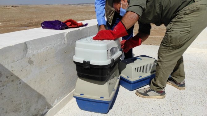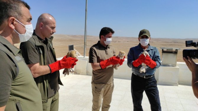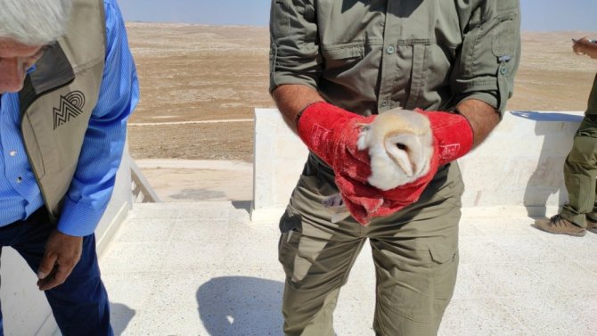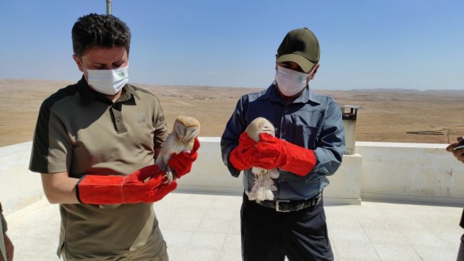 Şanlıurfa'da tedavisi tamamlanan 3 peçeli baykuş, Doğa Koruma ve Milli Parklar Genel Müdürü İsmail Üzmez tarafından doğal yaşam alanına salındı.