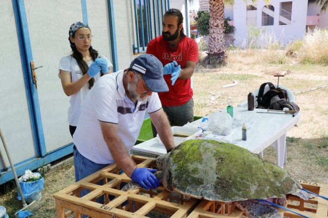 DEKAMER Proje Asistanı veteriner hekim Gizem Leyla Çakmak ise 30-35 yaşlarındaki kaplumbağanın genel durumunun iyi olduğunu kaydetti.