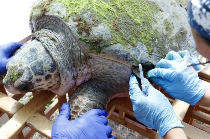 Çalış Plajı'nda yumurta bırakan caretta carettanın yaralı olduğunu fark eden, Çevre ve Şehircilik Bakanlığı Tabiat Varlıklarını Koruma Genel Müdürlüğü bünyesindeki Deniz Kaplumbağası Araştırma Kurtarma ve Rehabilitasyon Merkezi (DEKAMER) görevlileri, yuvalamasının ardından caretta carettanın kabuğunda kesik olduğunu belirledi.
