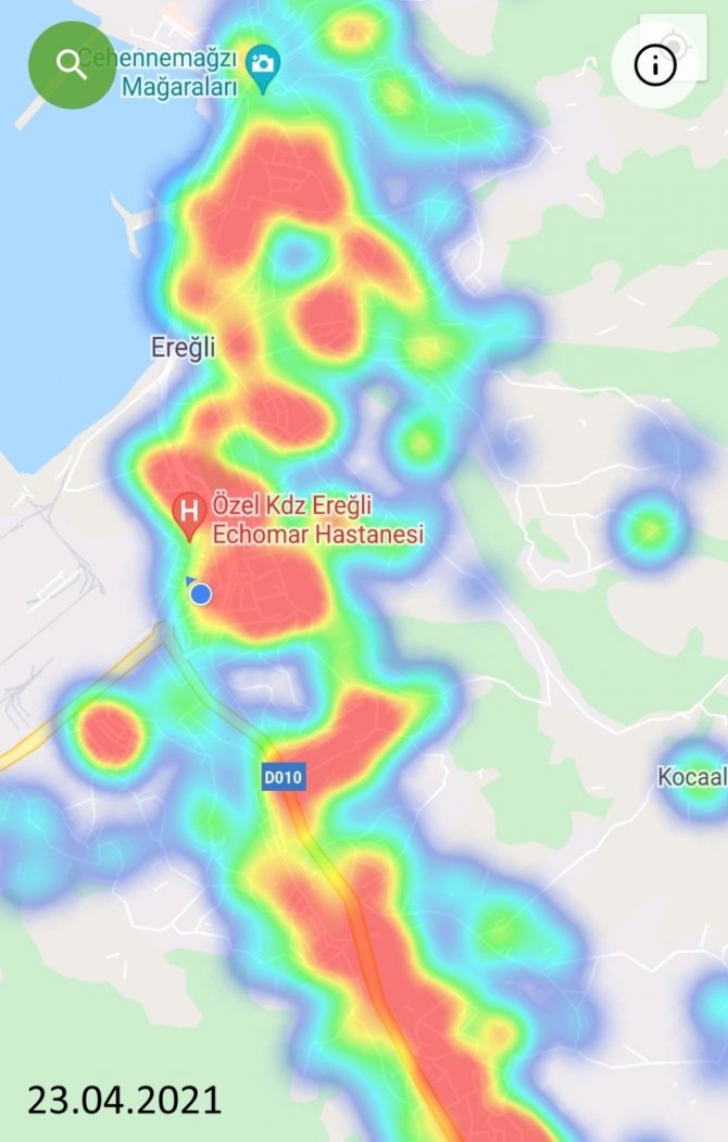 Zonguldak'ın Ereğli ilçesinde tam kapanma ve sıklaşan tedbirler ile birlikte vaka sayılarında düşüş var. Azalan vaka sayıları Hayat Eve Sığar (HES) haritasına da yansırken şehir yeniden yeşile döndü.