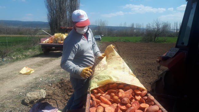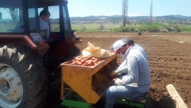 Kütahya’nın önemli patates üretim yerlerinden olan Emet ilçesi Doğanlar köyünde, Korona virüs Covid-19 salgınına rağmen, tarımın sürdürülebilmesi adına çiftçiler büyük bir fedakarlıkla patates ekimini sürdürüyor.