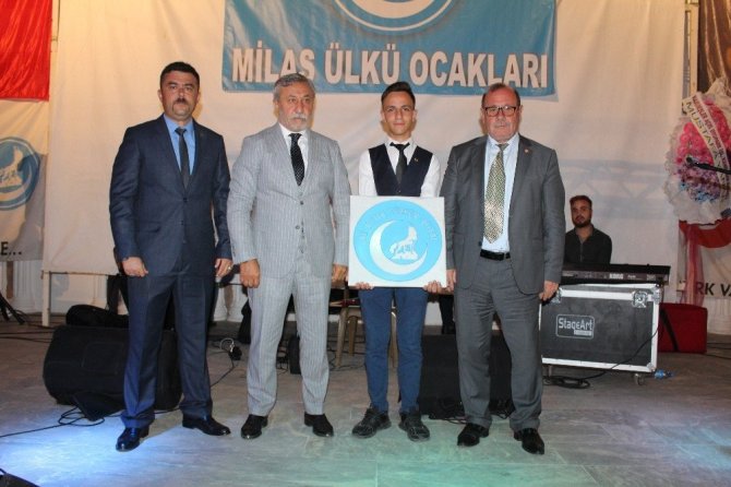 Daha sonra Milas Ülkü Ocakları Eğitim ve Kültür Vakfı yararına hediye çekilişi ve açık artırmaya geçildi. El işçiliği ile yapılan mermer bozkurt panosu 25 bin lira ile gecenin konuğu MHP Milas İlçe Başkanı Emin Nazmi Ünlüsoy’a verildi.