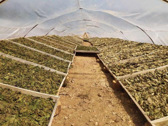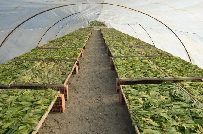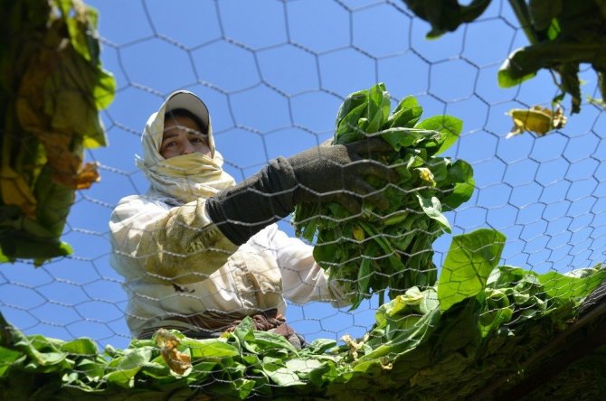 Tütün toplama işini çoğu çiftçi, günlük 100 ile 150 TL arasında çevre köylerden gelen tütün işçilerine yaptırıyor. Tarlada çalışmak için gece yarısı evden çıkan işçiler, gün doğumuna yakın saatlerde tütün topluyor. Tek tek toplanan tütün yaprakları, olgunluk seviyesine göre farklı zamanlarda birkaç seferde toplanıyor. Çiftçiler, tütünleri toplarken “elek” adı verilen tellerin üzerine yerleştirip kuruması için seralara götürüyor. Sera içerisinde sıcaklığın üç dört kata kadar arttığı ve toplanan tütünlerin kuruma süresi ise bu sayede azalıyor. Tütünlerin kısa sürede kuruması çiftçilere zaman kazandırıyor. Tütünler, hasat döneminin sonunda kolilere koyulması ile satılmayı bekliyor. Artık yeni sistem ile birlikte şişler geçirilen tütünler, ardından iplere dizilerek kurutma yönteminin ise azaldığı görülüyor.