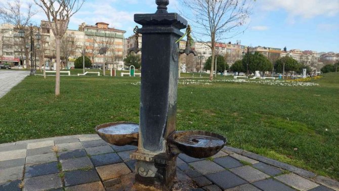 Meteoroloji Genel Müdürlüğünce yapılan soğuk hava uyarılarının ardından Tekirdağ'da parkta bulunan musluklar ve süs havuzları dondu.