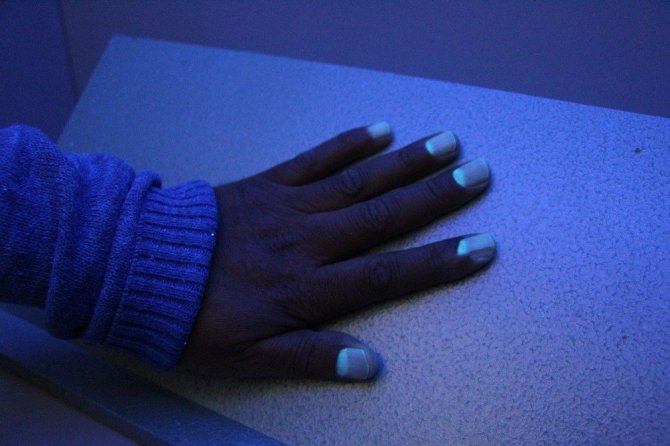 350 kişiden 110 kişinin koronaya yakalandığı fabrikada ürünlerin son renk kontrollerinin yapan laboratuvar sorumlusu Gülden Ener, yaşanan renk değişimini ilk kendisinin fark ettiğini söyledi. Ener, “Renk bakılırken fark edilen bir durum ve arkadaşın elinde fark edildi. Sonra korona geçiren arkadaşın tırnaklarına bakıldığında korona virüs geçirenlerin çoğunluğunda bu durumun fark edildiğini gördük. Mor ışıkta fark ediliyor. Korona virüse karşı koruduğunu düşünüyorum. Bir cihaz üretildi onunla ilgili bildiğim kadarıyla. Cihazın içerisinde de bu ışıktan olduğunu biliyorum ve koruduğunu düşünüyorum. Kendim sürekli ışığın altındayım ve sıkça kullanıyorum. Hasta olmadım şu ana kadar ama belki ışık koruyor olabilir” ifadelerini kullandı.