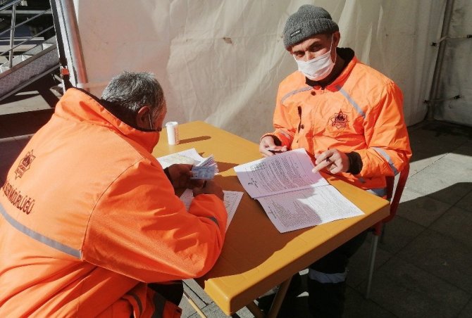 Korona virüs (Covid-19) önlemleri kapsamında hafta sonu uygulanan sokağa çıkma kısıtlamasında sessizliğe bürünen cadde ve sokaklarda çevre temizliği görevlerini yerine getiren Aksaray Belediyesi Temizlik İşleri Müdürlüğü ekipleri, temizlik yaptıkları bölgede gördükleri Kızılay çadırına giderek örnek bir davranışa imza attı. Kızılay çadırında kan bağışıyla ilgili bilgiler alan temizlik görevlileri ardından kan bağış formunu doldurarak temizlik için sıvanan kollar bu kez kan bağışı için sıvandı. Kan bağışında bulunan temizlik görevlilerinden Burhan Güngör (41), "Ülkemizin yaşadığı sağlık sorunu nedeniyle ekip arkadaşlarımızla birlikte kan bağışı yaptık. Çok mutluyuz, Kızılay'a teşekkür ederiz" dedi.